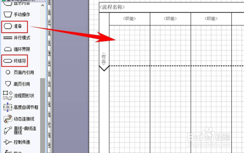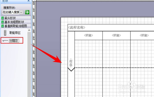 在建造流程图的时辰,我们一般会把工作划分为几个年夜的阶段,为了将各个阶段显示的更清晰,我们就可以经由过程选中外形区的分隔符,拖动至画布上响应的位置,就能完当作分隔符的添加。若是将要削减分隔符,则可以在分隔符左侧位置点击鼠标左键,将其选中,然后按Delete键删除。