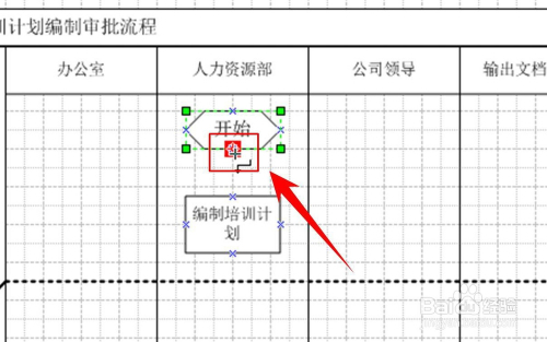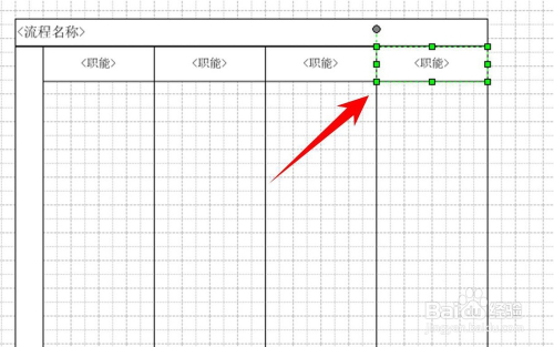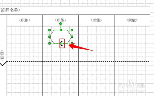 在流程图模板中点击本能机能带区最上方,待被选中图形周围酿成绿色(如图所示)时,点击Delete键就可以实现本能机能带区的削减。
