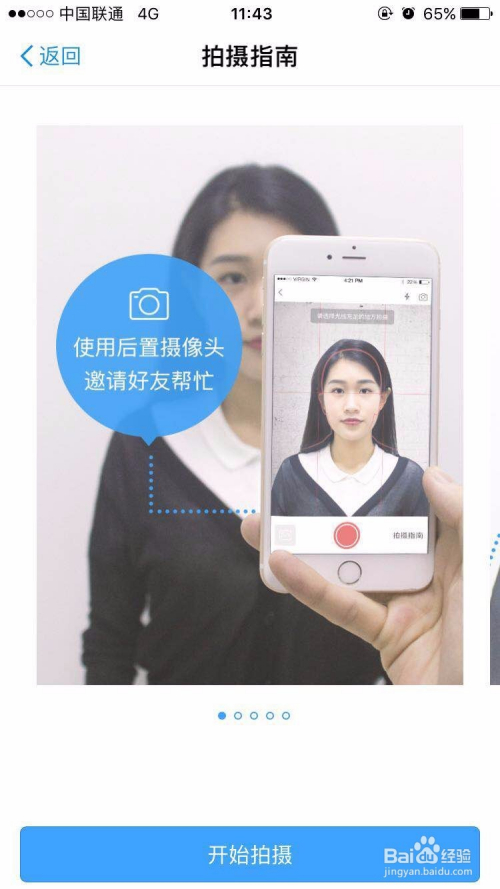 选择好需要的照片规格后,进去会有拍摄的技巧提醒,按照提醒完当作照片的拍摄后即可。