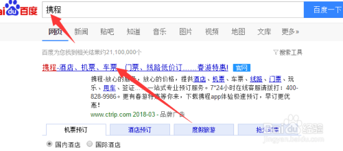 首先进入网页版的携程观光。百度进口搜刮或者从导航页进入都可
