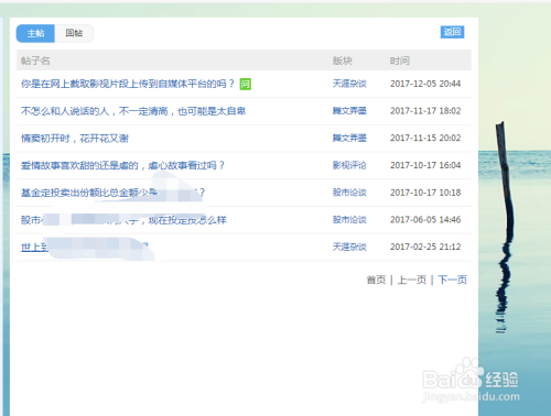 可以看到本身答复过的帖子。