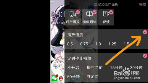 在播放速度右边的圆圈内勾选,点击右上角的完当作按钮。