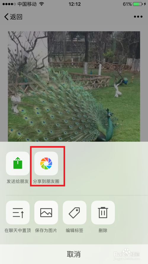 接下来在界面的下方会弹出一些选项,上边有两个功能选项,一个是发送给伴侣,一个是分享到朋友圈,这里点击分享到朋友圈。