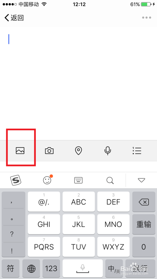接下来就会进入到一个编纂的界面,这里上边的空白区域可以编纂文字,选择下边最左边的一个图标,也就是选择图片和视频的快捷图标。