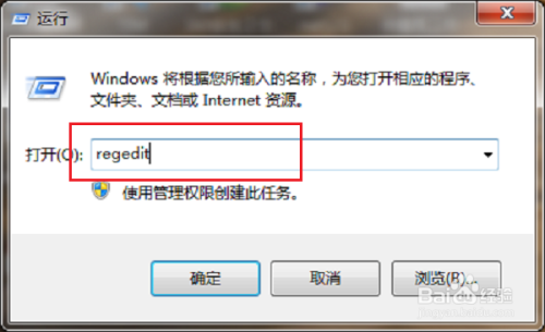第一步在我们的电脑上按win+R键打开运行,输入"regedit",如下图所示: