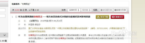 输入关头词,确定后,该网站会在本身的数据库内进行搜刮,协商平易近本家儿为例就可以搜刮到3000多篇,可见该数据库仍是比力全的。