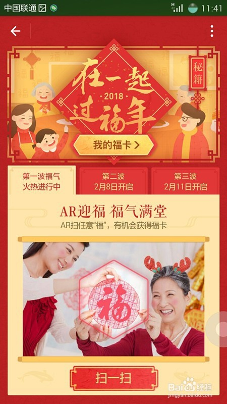 这时,我们就进入集福活动页面了,在页面中,我们可以看到对扫福活动的宣传及响应的提醒信息;