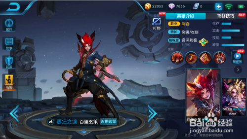 首先看一下百里玄策的英雄形象,从简介上看,百里属于刺客,输入打野类英雄,进犯高,可是上手难,所以想要玩好百里玄策的伴侣们需要好好操练啦。