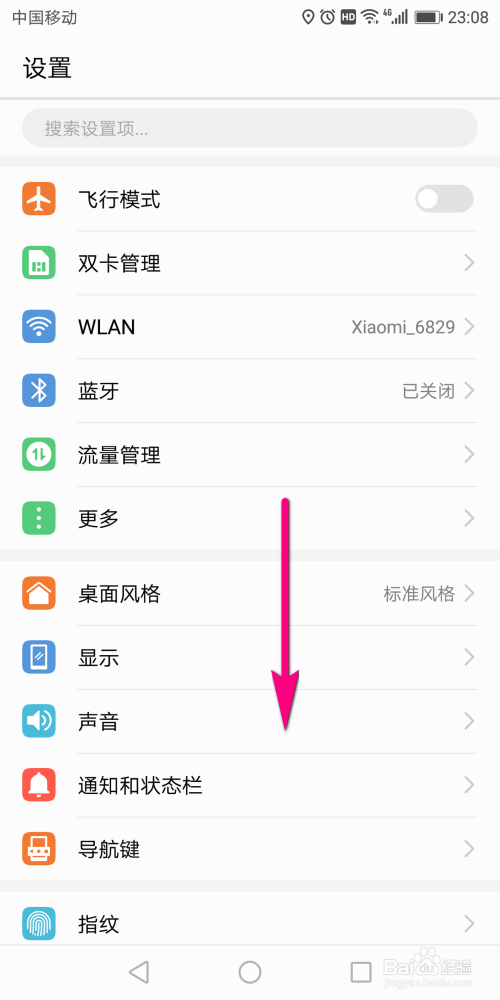 进入华为手机的设置界面今后,在页面上方并看不到我们需要设置的选项,这时需要标的目的下滑动设置页面的列表。