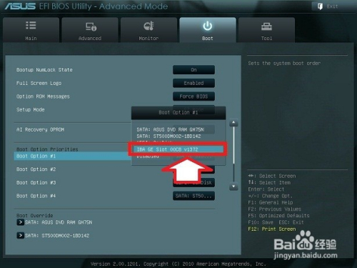 此外,开启收集叫醒,还需进入Boot(启动项)内将Boot Option #1设置为网卡启动→IBA GE Slot。
