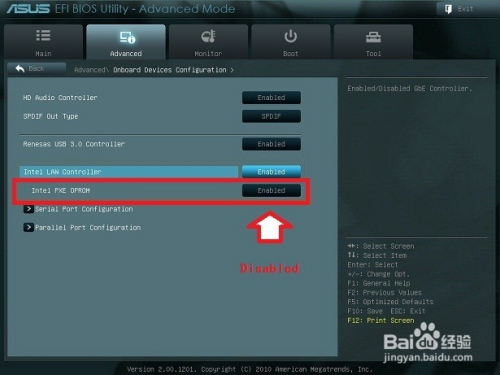 Intel LAN Controller设置为Enabled,随即呈现子选项Intel PXE OPROM,设置Enabled。