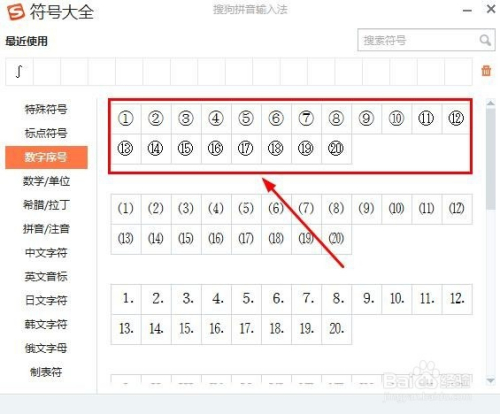在这里可以看到1-20的带圆圈的数字序号