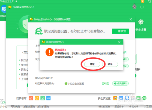 按照系统提醒的对话框选择确定。此时默认浏览器酿成了未锁定状况。