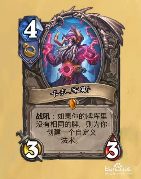[卡扎库斯]可与[布莱恩.铜须]一同利用,如许可触发2次战吼,即可建立2张神通牌。