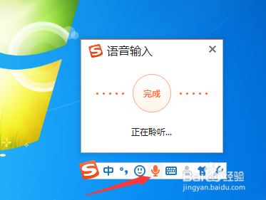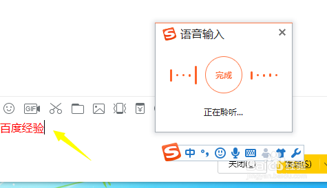 例如我们用语音说百度经验,点击完当作让输入法主动检测声波输入。