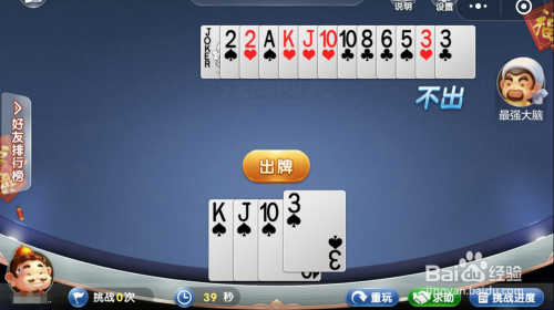 下面就等对方出牌,我们就按照从小到年夜挨次出,每一次出牌都要禁止对方,最后单张Q必然要禁止住对方的J和6,如许就没问题了,如下图所示。