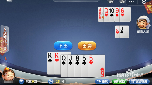 被对方压制后对方会出对J,此时我们可以出对K进行压制,然后我们在出失落手里的对5,如下图所示。