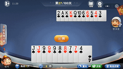 这关只要先出789的连对,然后接上拆J发单,怎么发这么赢。