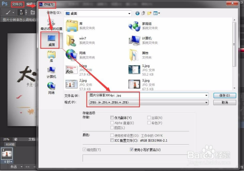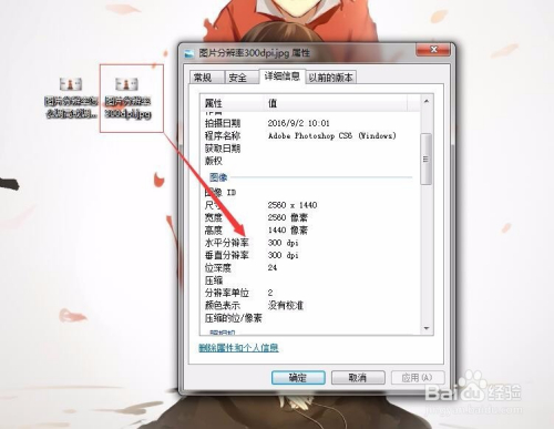 确定后我们再把图片存储为桌面看下图片结果,鼠标右键查看保留的新图片的属性,就可以看到图片的分辩率已经按我们的设置调整当作300dpi了。