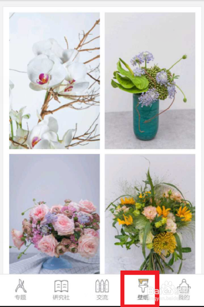 进入“花田小憩”最始页面,下方第四格即为“壁纸”的进口,按开这里诸多美花映现眼目。