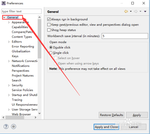 第二步:选中“general”,并睁开