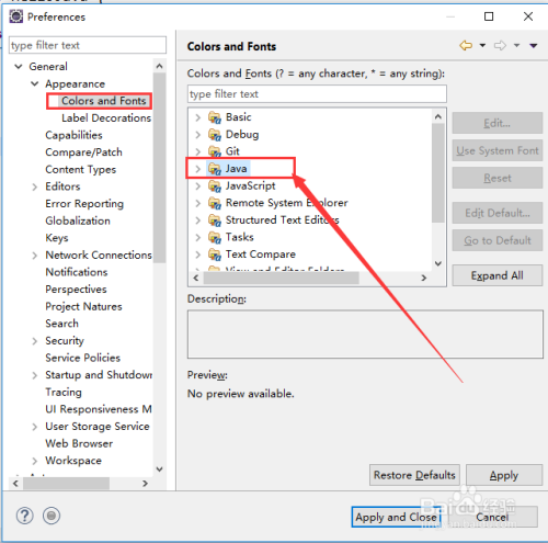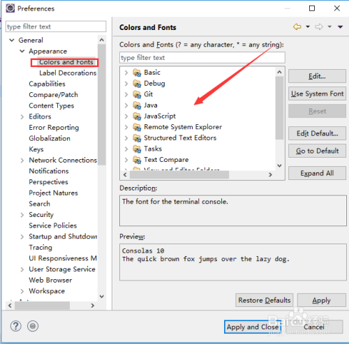 第四步:在第三步睁开成果中,选中“Colors and Fonts”