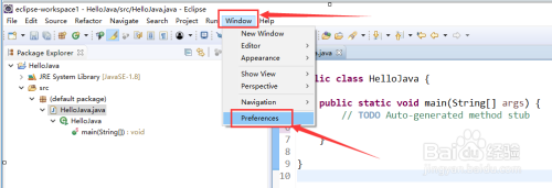 第一步:选中“window”->“preferences”