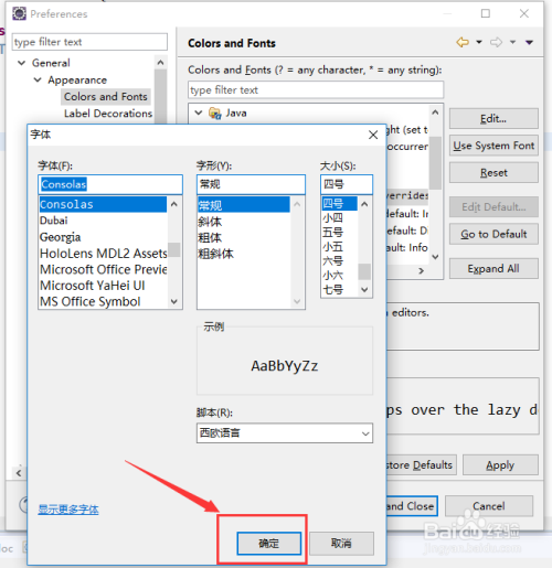 利用Eclipse编纂器进行项目开辟,有时需要点窜字体的类型和大小