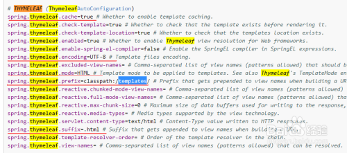 其次要知道thymeleaf的默认设置装备摆设,从官网上可以查询到thymeleaf的默认设置装备摆设,如下。有一个设置装备摆设就是缓存最好封闭:spring.thymeleaf.cache=false,直接放到application.properties文件中。