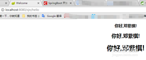 启动项目,打开谷歌浏览器,拜候/sjn/hello办事,查看结果