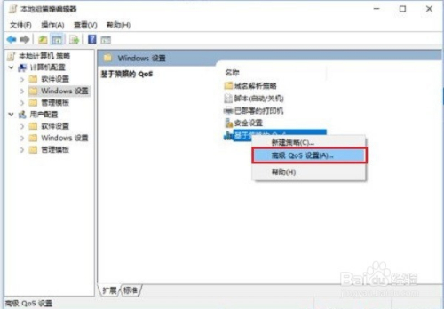第三步进去windows设置界面之后,选中基于策略的Qos,如下图所示: