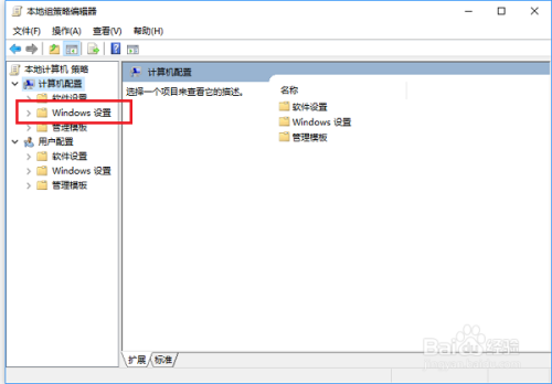 第二步进去当地组策略编纂器界面之后,点击计较机设置装备摆设下面的“windows设置”,如下图所示: