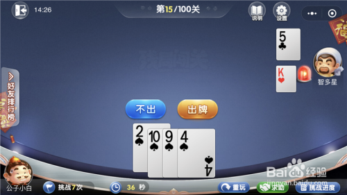 - 微信欢喜斗地主残局闯关4月第15关