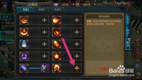 进入附灵后,若是有对应的魂灵,就可以看到神通旁边原本呈灰色的+号,此刻呈金黄色,点击金黄色的加号,如图。