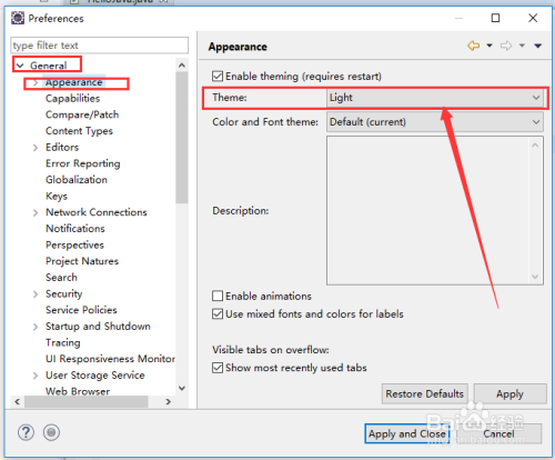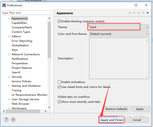第四步:选中“Appearance”,点窜右侧“Theme”参数为“dark”