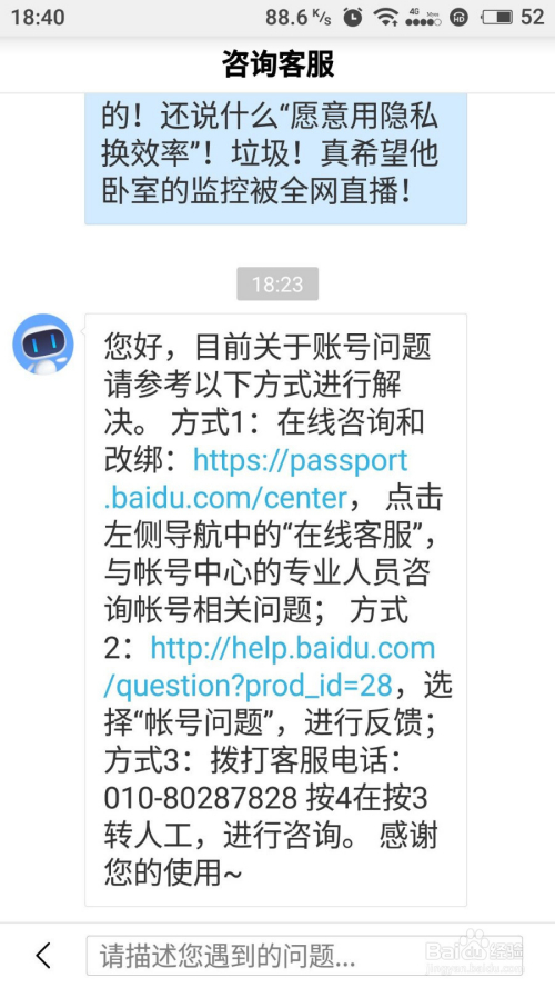 获得所谓“机械人客服”的包管(怪谁咯?相信某度的包管?)“我们会当真处置的”。