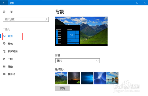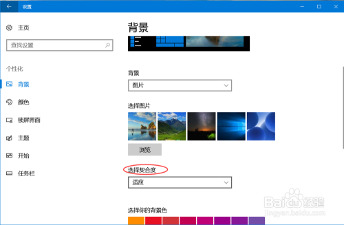 在个性化的布景选项里面起头更改桌面布景,我们可以添加系统自带的图片,或者浏览添加本身喜爱的图片,如图