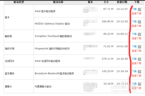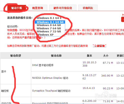 搜刮后,我们可以发此刻驱动下载下,可以选择我们响应的操作系统,并显示一些驱动,如“显卡”,“触控板”,“指纹识别”等的驱动源下载