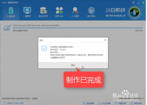 U盘在建造过程中,要耐烦期待,需要期待10分钟摆布,建造完当作后,点击确定即可。