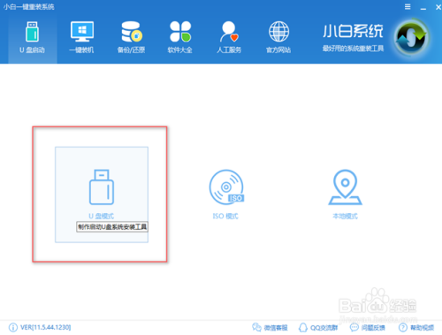 将我们事先筹办好的U盘插入到电脑中,在呈现的界面中,点击“U盘模式”。