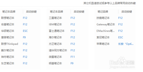 再重启电脑进入“Bios”设置,启动PE系统,就是在卡机时按住快捷启动键。电脑品牌分歧,选择的启动键分歧。可以对照下图查询。