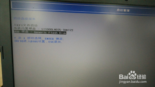 进入启动选项菜单后,选择“USB硬盘-Gener ic Flash Dish”。