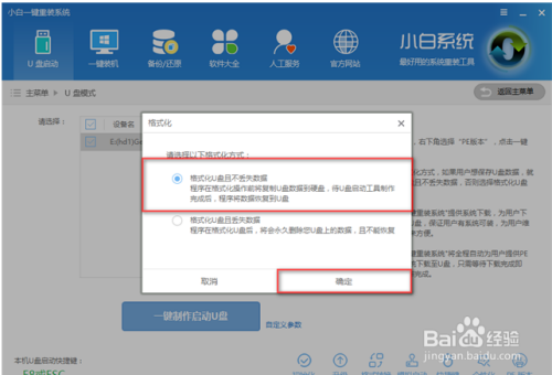 鄙人一个菜单中选择“格局化U盘且不丢掉数据”。