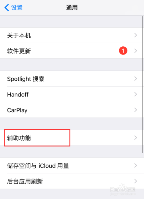 进入通用设置后,找到辅助功能,点击进入,参照下图