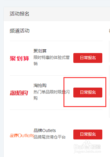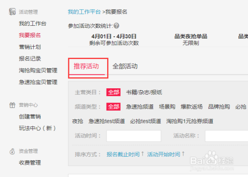 进入淘抢购页面,选择“保举活动”,此时就会保举出来当前店肆可以申报的活动了