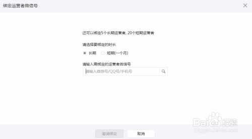 我们点击添加今后,会弹出一个窗口,可以设置是持久仍是短期的,我们按照环境来进行选择就好了,下面就是输入开辟者的微旌旗灯号或手机号或QQ号,我们输入上今后,记得点击一下后面的搜刮按钮,点击确认邀请就可以了