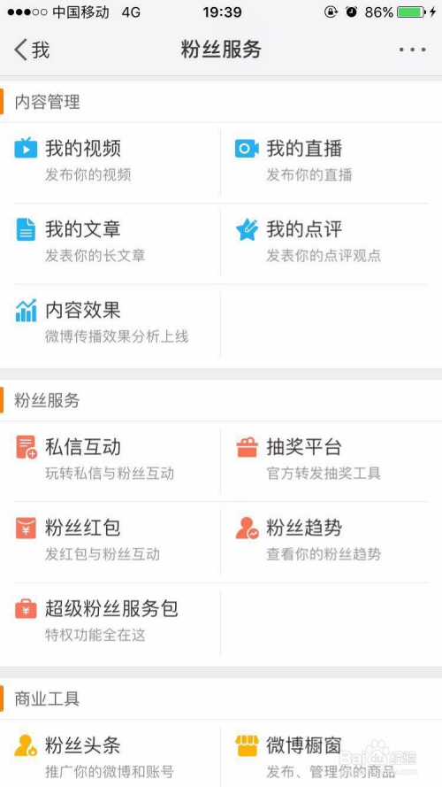点击东西栏下方的【我】,进去后,找到粉丝办事功能。