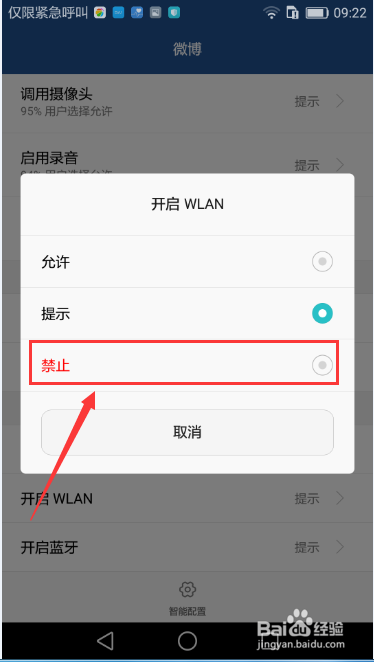 这时会弹出一个提醒框,我们选择“禁止”。如斯一来,“微博”的联网权限就关失落了。当我们再次进去“微博”APP时就会发现已经无法联网了。