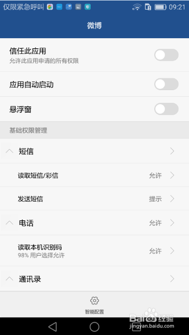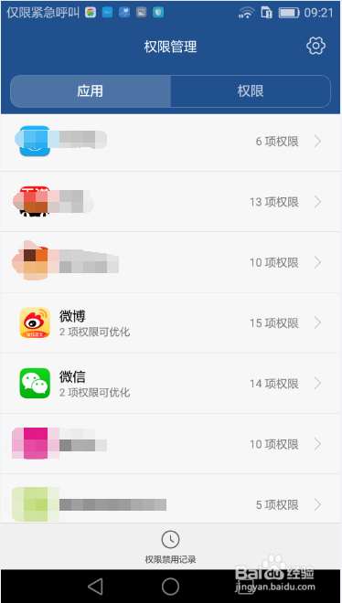 可以看到“微博”中会枚举出所有的授权许可的所有权限。