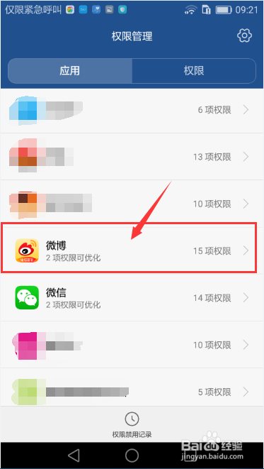 假设我们此刻需要将“微博”的联网功能封闭失落。我们在APP列表中找到“微博”并点击进入